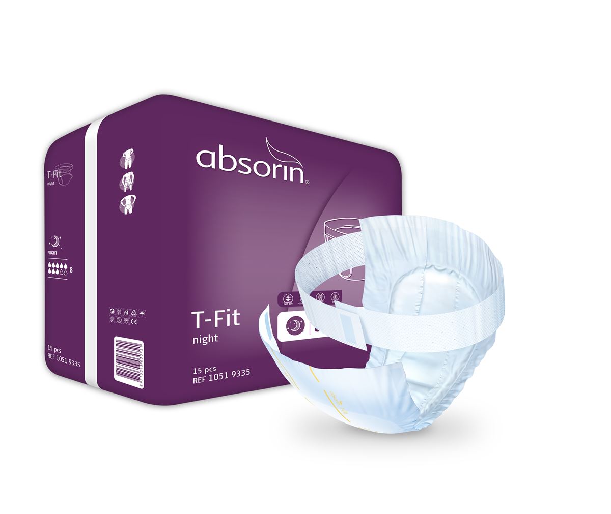 Absorin Comfort T-Fit Day/Night change complet d'incontinence avec ceinture medium 15 pcs