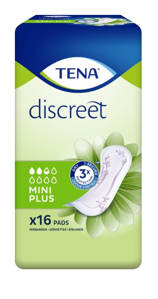 TENA Discreet Mini Plus, insert avec bande adhésive, pour femme ; en cas de perte d'urine.