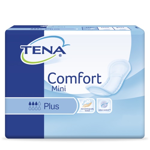 Tena Comfort Mini Plus, wegwerp inlegger met plakstrook; voor dames en heren met urine-incontinentie.